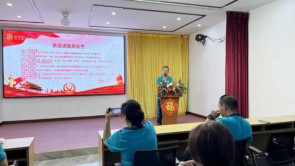 公司通过多维宣传体系深化质量文化建设:在公司大厅电子屏持续滚动播放质量月主题宣传内容,并悬挂醒目的质量主题横幅;各部门早会、周例会中设置质量专题环节;每周一全员早会开展质量知识抢答赛;开展《化妆品生产质量管理规范》体系专项培训。这种立体化宣传方式有效营造了全员关注质量的浓厚氛围,使质量文化深入人心。