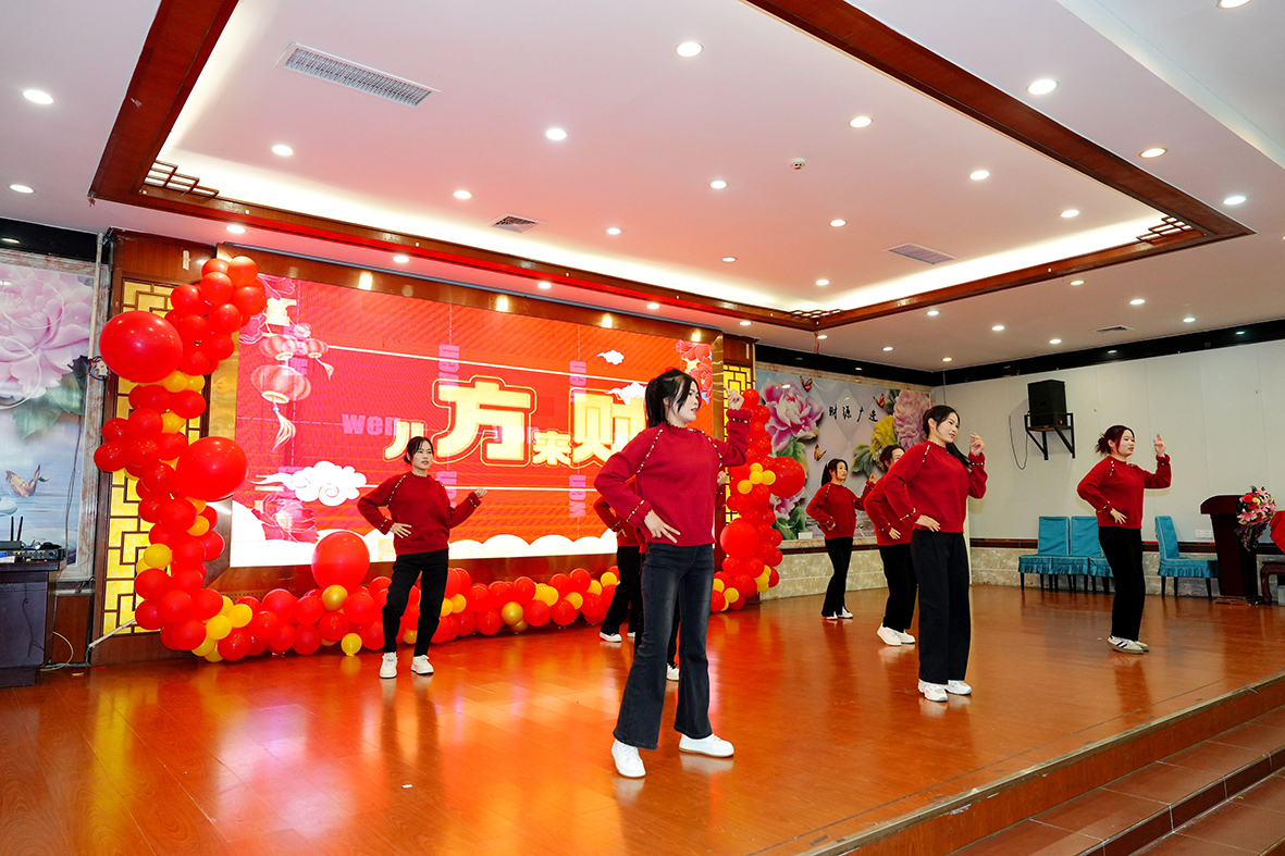 随后,文艺表演的舞台化作璀璨星河,员工们自导自演的节目如百花竞放般轮番闪耀,将圣雪颜人的才情横溢与奋进英姿淋漓挥洒。欢声笑语织就温暖锦缎,掌声如春雷滚动不息,现场沉浸于一片祥瑞欢腾的节日光景中。