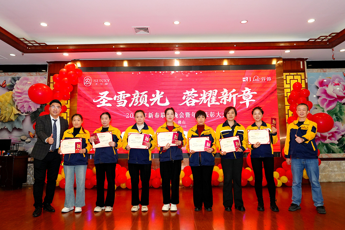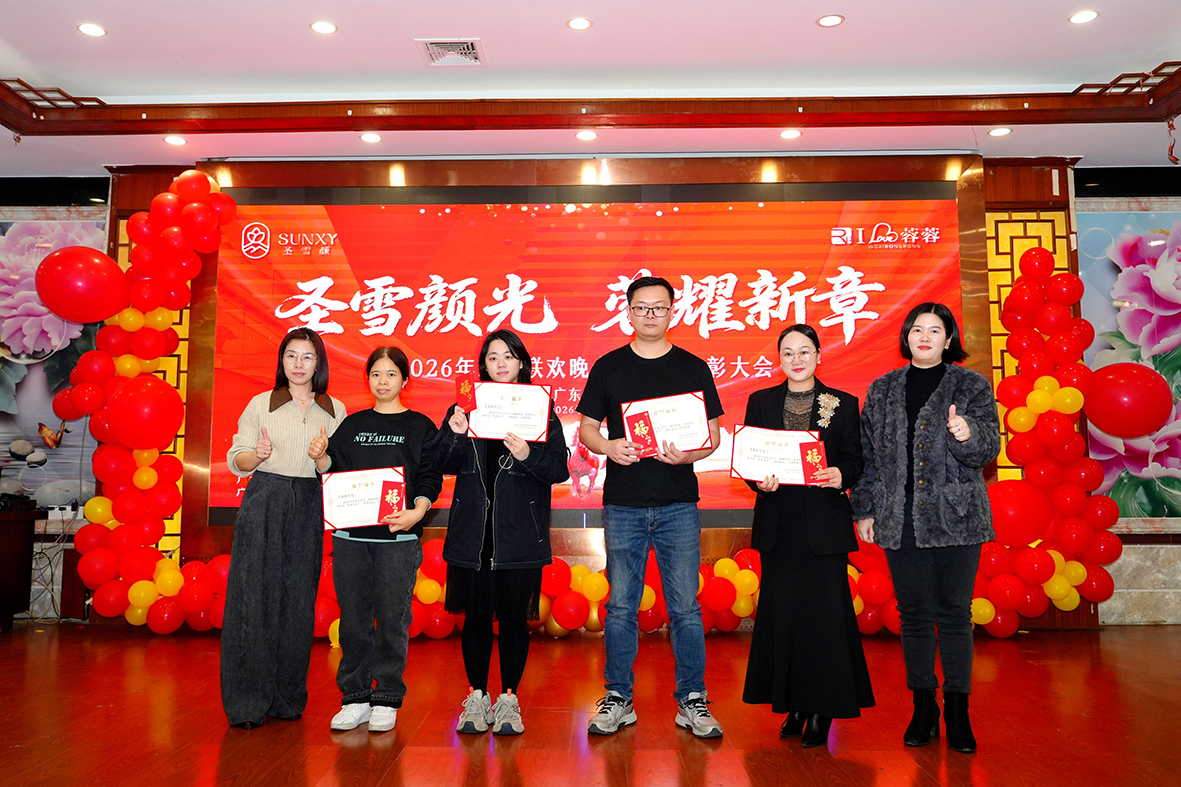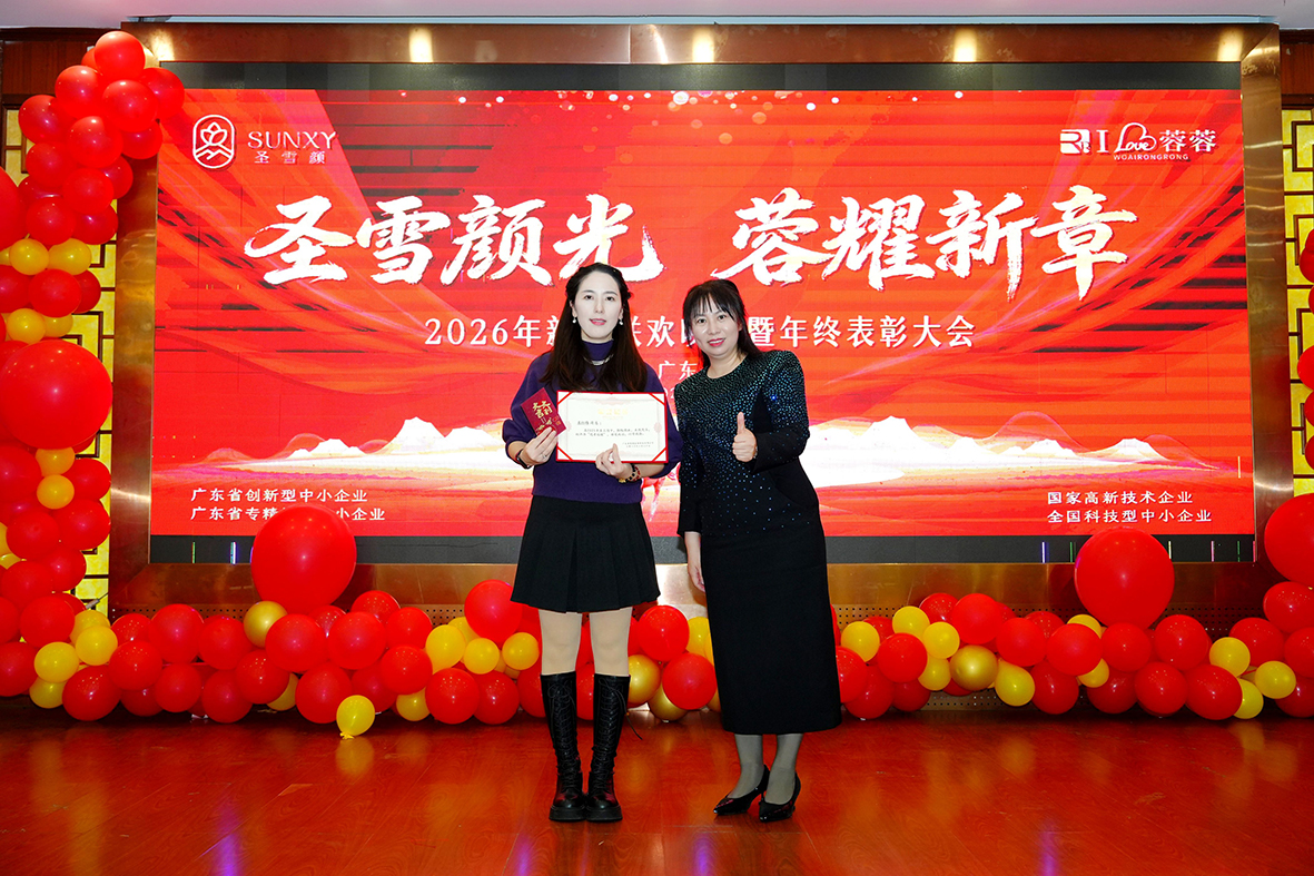 过去的2025年,圣雪颜家人共同努力,优秀个人与优秀团队脱颖而出。公司颁发奖项肯定付出,激励学习先进。财务经理朱红梅作为优秀代表发言,承诺秉承文化、创新奋进。